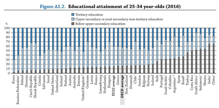 Fig. 1 – Educational attainment of 25-34 years-olds (2016)