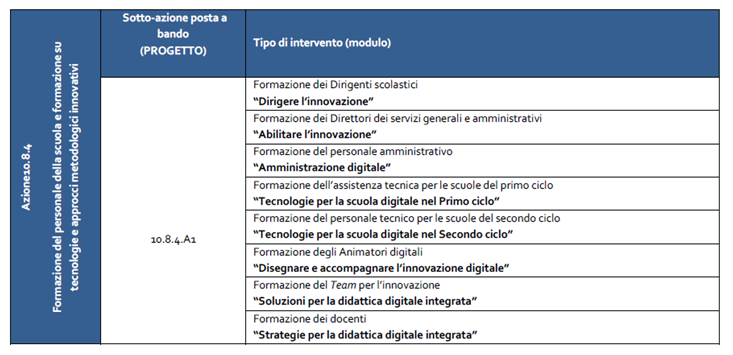 • di conseguenza, gli obiettivi specifici dei diversi percorsi (per Dirigenti Scolastici, Direttori dei servizi generali e amministrativi, Personale amministrativo, Tecnici, Animatori Digitali, Docenti del Team dell’innovazione, Docenti) devono essere quelli di stimolare e sostenere la motivazione verso l’innovazione, favorire lo sviluppo delle competenze digitali, nonché diffondere la conoscenza e l’uso delle tecnologie digitali per una scuola aperta al territorio, inclusiva e innovativa;