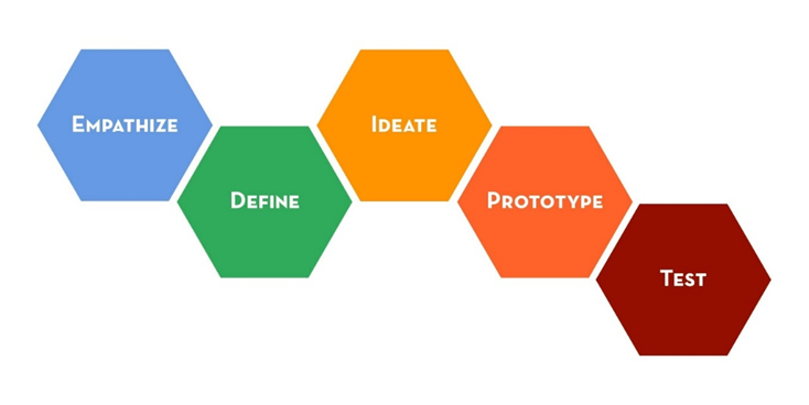 La progettazione partecipata è realizzata seguendo le fasi della metodologia del design thinking (empathize, define, ideate, prototype, test) (fig.4) e utilizzando le tecniche – il più possibile digitali – dell’animazione e facilitazione, introducendo i partecipanti all’uso di strumenti di immediato utilizzo. In particolare, alcuni strumenti più di altri hanno più suscitato l’interesse dei partecipanti. Sono strumenti – non del tutto sconosciuti nella progettazione – che le scuole utilizzano per la vita dell’istituto, per la programmazione, per la didattica, per la comunicazione; ma, forse per la prima volta, la gran parte dei partecipanti li ha utilizzati in modo organico, in gruppi di lavoro multidisciplinari, in modalità cooperative e sperimentali.